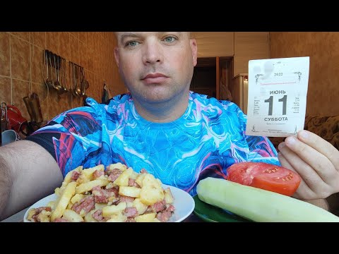 ОБЖОР Жареная картошка с колбасой/МУКБАНГ утренний