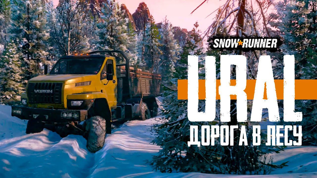 Могучий URAL пробирватеся по лесной дороге. Имандра. SnowRunner.