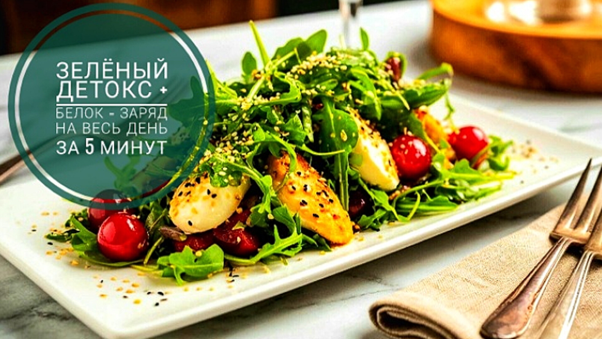 Ингредиенты (на 2 порции): 100 г рукколы 200 г куриной грудки 10–12 помидоров черри 125 г моцареллы (мини или крупной, порезанной кубиками) 1 ст. л. кунжута (можно поджарить для аромата) 2 ст. л. оливкового масла 1 ч. л. бальзамического уксуса (или лимонного сока) Соль, перец по вкусу По желанию: мёд/горчица для заправки Приготовление: Куриная грудка: отварите или обжарьте на сковороде с солью и специями, затем остудите и нарежьте ломтиками или кубиками. Овощи и сыр: помидоры черри разрежьте пополам, моцареллу (если не мини) нарежьте кубиками. Сборка салата: в миску выложите рукколу, добавьте курицу, черри и моцареллу. Заправка: смешайте оливковое масло, бальзамический уксус, соль и перец (можно добавить ½ ч. л. мёда или горчицы для вкуса). Полейте салат. Подача: посыпьте кунжутом (можно предварительно обжарить на сухой сковороде 1–2 минуты). Варианты: Добавьте авокадо или кедровые орехи для большей сытности. Замените моцареллу на брынзу или фету для более яркого вкуса. Салат получается свежим, сбалансированным и очень аппетитным! 😊
