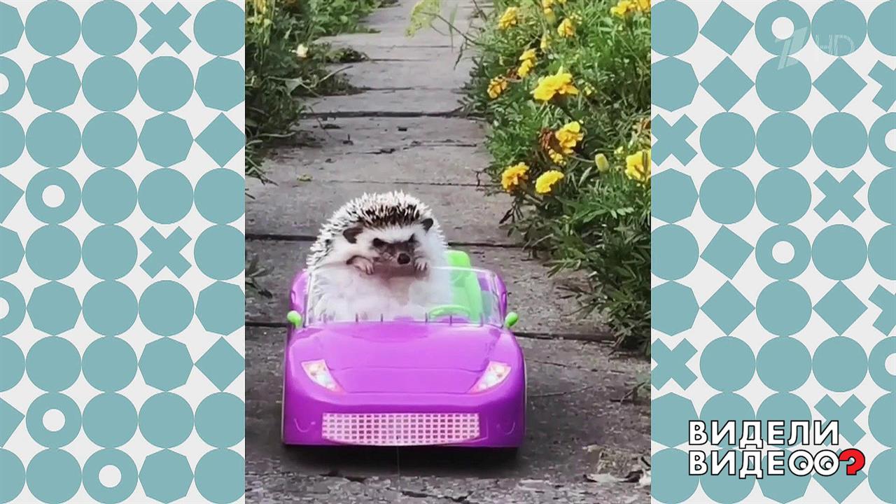 Ежиха Жужа отлично смотрится в розовом кабриолете!