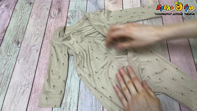 355368 Комбинезон BabyCosy с длинным рукавом хлопковый на заклепках бежевый