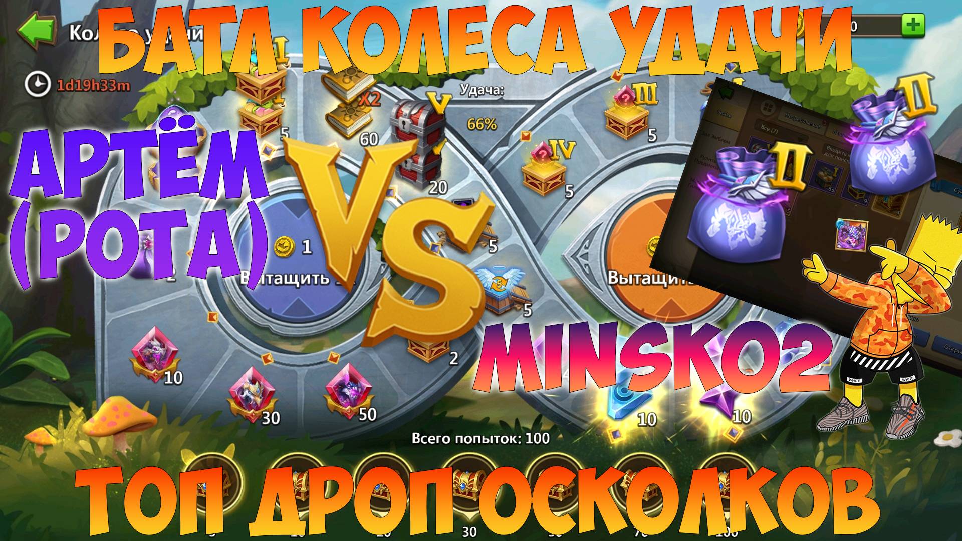 БАТЛ КОЛЕСА УДАЧИ+МЕШКИ ЦИКЛОНА, АРТЁМ VS MINSK02, ТОП ДРОП ОСКОЛКОВ, Битва замков, Castle Clash