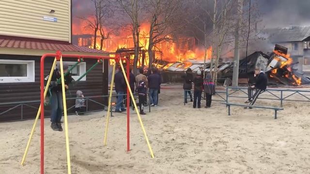 Мальчик из города Ноябрьск, качающийся на качелях рядом с горящим домом. #пожар #дети #качели #реакция