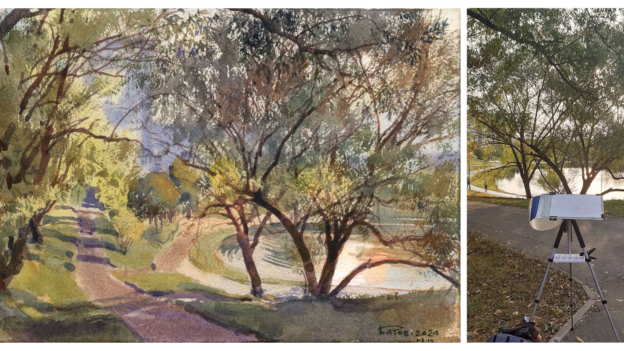 20241003 Рядом с Ясеневскими прудами. Москва. Натурный этюд, акварель