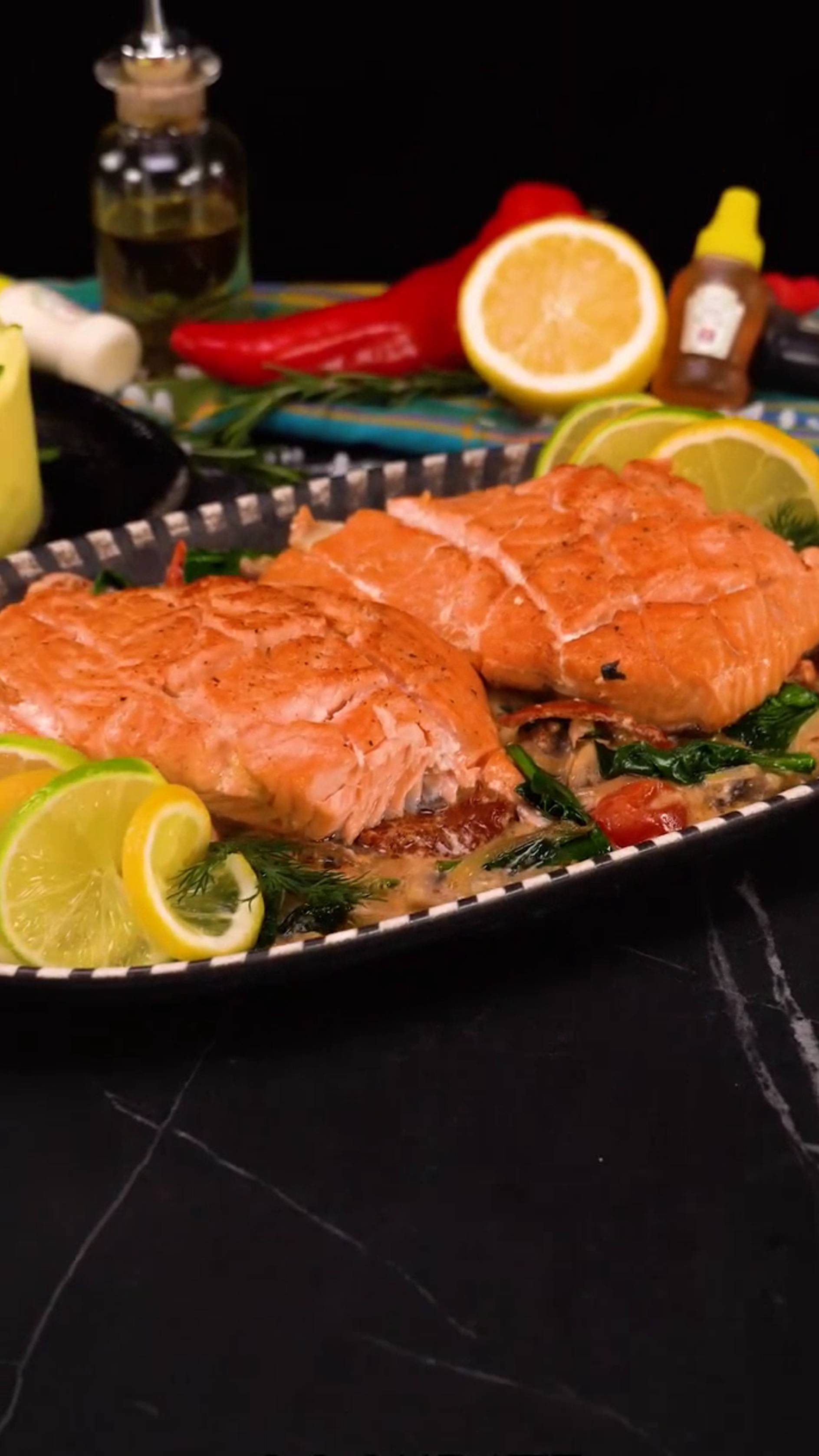 Отличная идея приготовления лосося, которую должен знать каждый Ингредиенты лосось: 1.3 кг мягкое сливочное масло: 200 г чеснок : 10 г черный перец: 2 г соль: 5 г лук: 2 шт грибы, шампиньоны : 200 г помидоры черри : 150 г чеснок : 10 г вяленые помидоры : 50 г шпинат: 100 г сливки : 150 г соль: 3 г черный перец: 1 г пармезан: 50 г лимон: 1 шт картофель : 500 г Дополнительно соль: 3 г вода: 600 мл молоко: 70 мл сливочное масло: 50 г сметана: 50 г соль: 2 г Music: www.bensound.com Royaty Free Music: https://www.bensound.com License code: R8B3Q6F46SWLKTTS