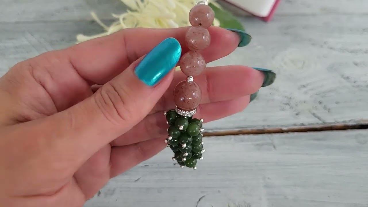 Браслет гроздь из нефрита, клубничного кварца