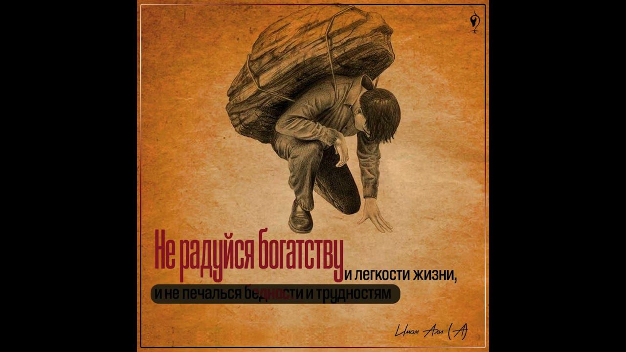 Имам Али (А): Не радуйся богатству и легкости жизни, и не печалься бедности и трудностям, ведь золото испытуется огнем, а верующий человек испытуется тяготами жизни. Гурар-уль-хикам, 10394