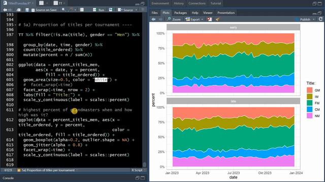 I often watch Chess tournaments on YouTube, so I was curious to analyze a whole year of blitz games played in the Titled Tuesday Tournaments, sponsored by @chess.com, where some of the worlds best chess players participate. ⏱ Time Stamps ⌚ 0:00 - Intro 1:45 - Data import and setup steps 2:38 - Data structure and variables 4:31 - What was the missing tournament 6:06 - Number of players participating 7:47 - Number of games played 13:01 - Average score needed to win (biggest draw) 15:12 - How common are ties 18:53 - Where do most players come from 25:25 - How often do different federations win 30:31 - What FIDE titles and blitz ratings the players have 40:41 - Which player won the most tournaments 42:37 - Which player participated most often 45:27 - Who achieved a perfect score 46:51 - Who won both tournaments on the same day 48:41 - Who had the longest winning/participation streak 55:01 - Who won the most prize money 1:00:11 - Who wins the most games with white/black 1:03:13 - Outro External Links: https://www.chess.com/tournament/live/titled-tuesdaysfair ♟️ Links to Chess YouTube channels used in intro: https://www.youtube.com/@themagnuscarlsen https://www.youtube.com/@UCweCc7bSMX5J4jEH7HFImng https://www.youtube.com/@UCHP9CdeguNUI-_nBv_UXBhw https://www.youtube.com/@UCQHX6ViZmPsWiYSFAyS0a3Q Using short clips of their livestreams should fall under Fair Use.