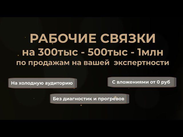 КАК ЗАПУСТИТЬ ПРОДАЖИ на 300к-500к-1млн без диагностик по новым связкам