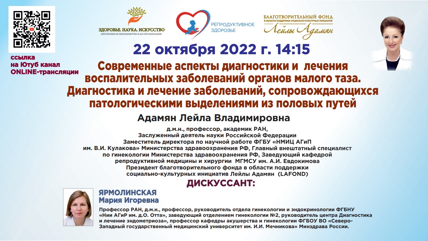 Современные аспекты в диагностике и лечении воспалительных заболеваний органов малого таза. Диагностика и лечение заболеваний, сопровождающихся патологическими выделениями из половых путей женщин. Онлайн лекция в рамках благотворительного просветительского образовательного проекта «Открытый университет» для врачей по вопросам репродуктивного здоровья