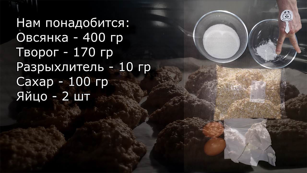 Рецепт полезного и почти диетического овсяного печенья своими руками. По вкусу можете добавить ванильный сахар, шоколад, или вашу любимую вкусняшку. Для приготовления овсяного печенья нам понадобится: Овсянка - 400 грамм Нежирный творог - 170 грамм Сахар - 100 грамм (печенье получится не очень сладким, лучше 200 грамм) Разрыхлитель - 10 грамм Яйцо - 2 штуки Возможно, несколько ложек молока. Духовку разогреваем до 200 градусов, выпекаем 20 минут. Калорийность - около 60 ккал на одну овсяную печеньку. Приятного аппетита, и не забывайте подписаться на канал! Всем спасибо, и до встречи!