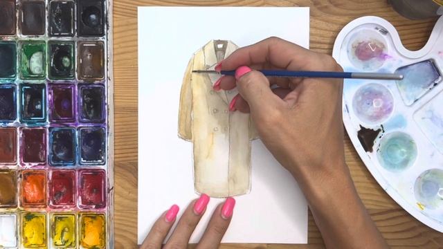 Как нарисовать пальто карандашом и акварелью начинающим | Рисунок поэтапно и легко для детей