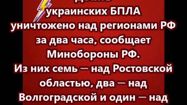 Десять украинских БПЛА уничтожено над регионами РФ за два часа