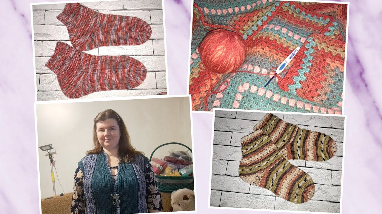 Последний вязовлог 12-23.12.23г.Много носочков.Безрукавка связалась неожиданно.Продолжаю вязать плед