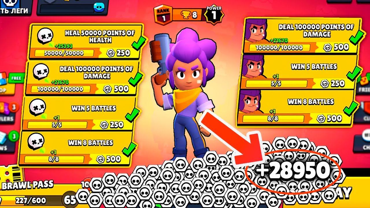 ПОСТАВИЛ МИРОВОЙ РЕКОРД Я ПОЛУЧИЛ 28950 ЖЕТОНОВ СРАЗУ! ВЫПОЛНИЛ 86 КВЕСТОВ В БРАВЛ СТАРС