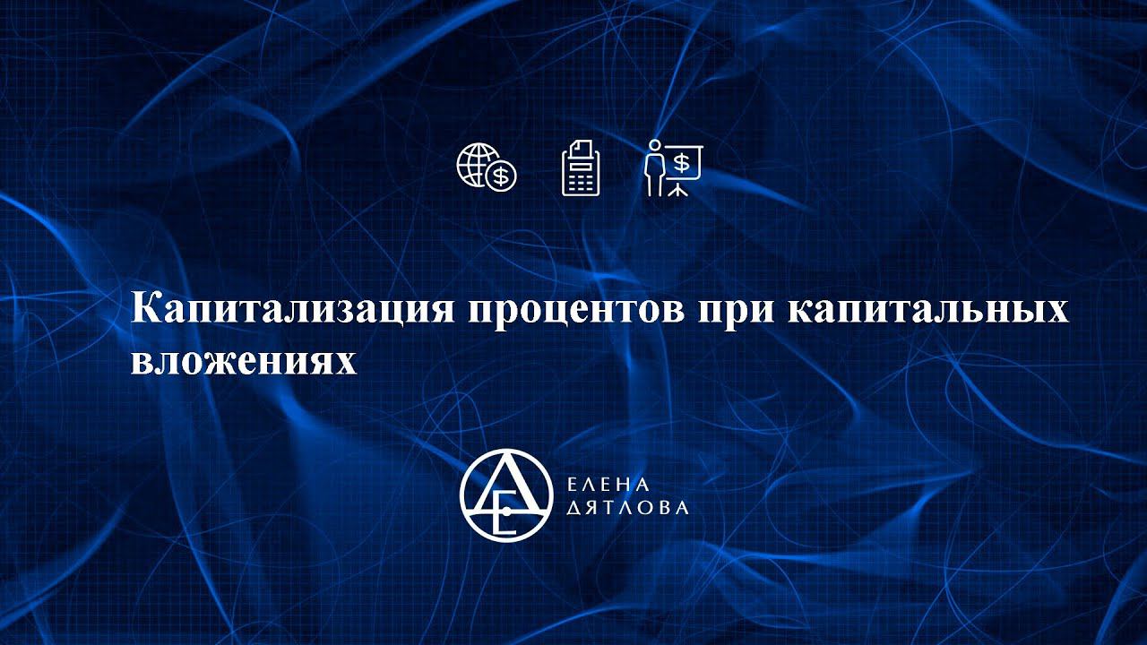 Добрый день, подписчики. Поговорим о капитализации процентов. В случае привлечения кредитов и займов для капитальных вложений, с выполнением условия отнесения объекта к инвестиционному, проценты подлежат капитализации. Это влечет за собой изменения в учете: увеличение стоимости ОС; контроль начала и окончания капитализации; увеличение налога на имущество; изменения в отчете ДДС и отчетности. Посмотрите ролик. Елена Дятлова говорит об этом подробно. Е.М. Дятлова - налоговый консультант, эксперт-практик в решении самых сложных вопросов по бухгалтерскому учету и налогообложению с опытом работы 25 лет. Более 3000 клиентов по всей России. В июне 2022г. Е.М. Дятлова провела вебинар на тему "Учетная политика. Часть 2. Применение существенности на примере новых ФСБУ". Вебинар можно приобрести в записи. В подарок - образцы расчетов-справок для разных ситуаций. Ознакомиться с подробной программой вебинара, оставить заявку можно на сайте https://buchguru.vip.