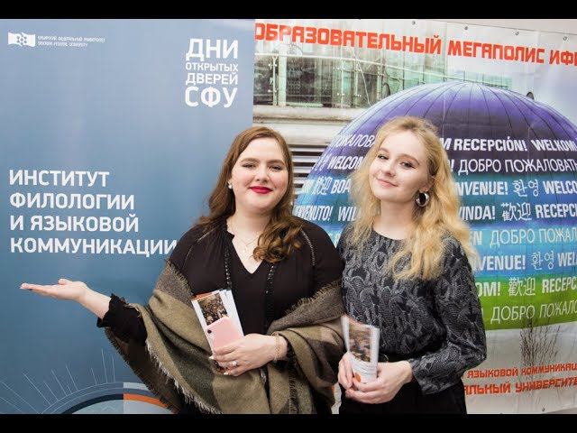 В СФУ прошёл "День открытых дверей". Институт филологии и языковой коммуникации представил площадки по всем направлениям разных специальностей: филологии, лингвистике, журналистике. Телевидение СФУ по традиции подарило школьникам возможность попробовать себя в роли репортёра и поучаствовать в конкурсе на самую креативную фотографию гостей площадок в студенческом "телевизоре". Победителей пригласят на экскурсию во время записи студийной программы. Подробности в информационном сюжете ТВ СФУ.