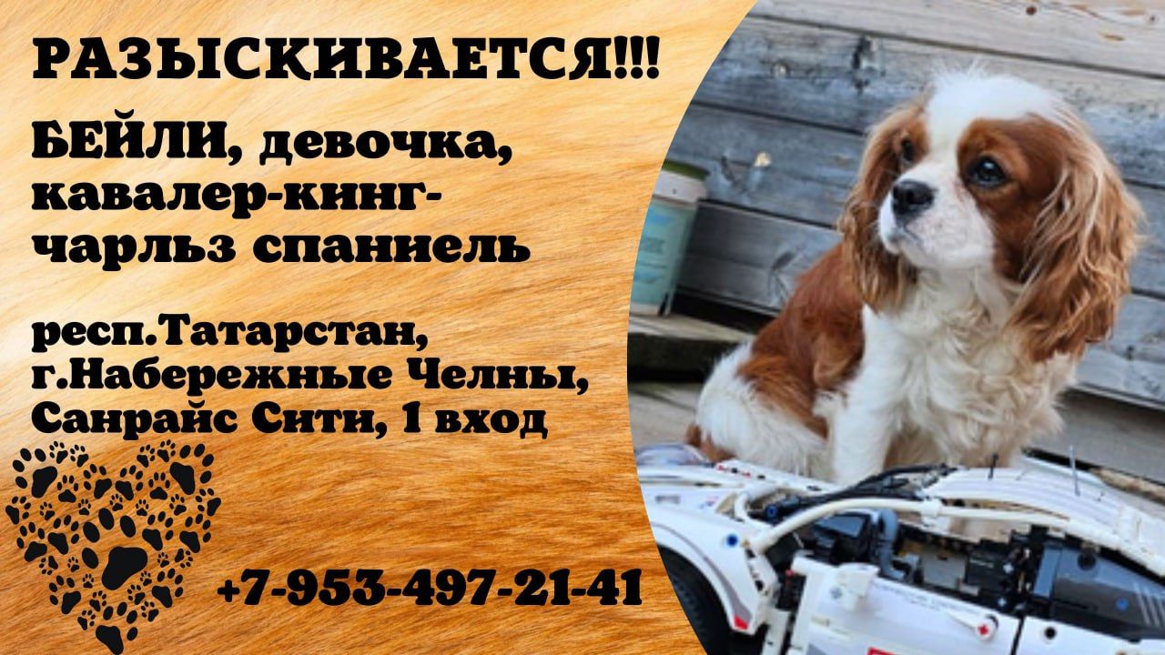 Пропала собака! БЕЙЛИ. Девочка, Кавалер-кинг-чарльз спаниель. респ. Татарстан, г. Набережные Челны