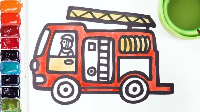 Рисуем и раскашиваем пожарную машину! \\ Рисование для мальчиков! Давайте рисовать вместе!