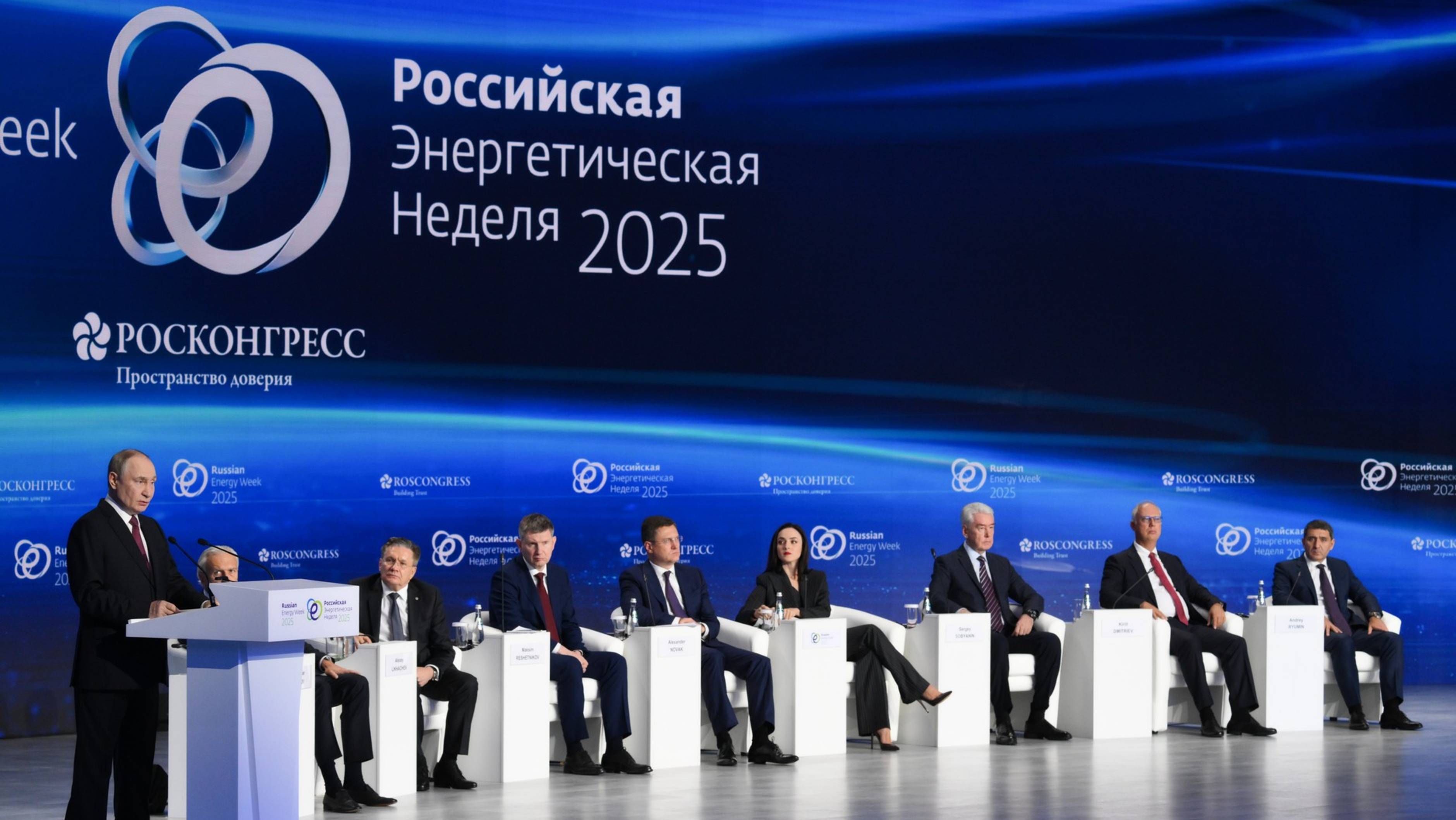 Владимир Путин выступил на пленарном заседании восьмого Международного форума «Российская энергетическая неделя». Тема форума 2025 года – «Создавая энергетику будущего вместе». Российская энергетическая неделя проходит с 15 по 17 октября в Москве. В ней принимают участие представители 85 стран: государственные деятели, лидеры энергетических компаний, представители экспертного и научного сообщества. Деловая программа включает в себя более 60 мероприятий. РЭН – ключевая международная площадка для обсуждения актуальных вопросов развития топливно-энергетического комплекса, развития многостороннего энергетического сотрудничества в многополярном мире. 16 октября 2025 года 14:40 Москва