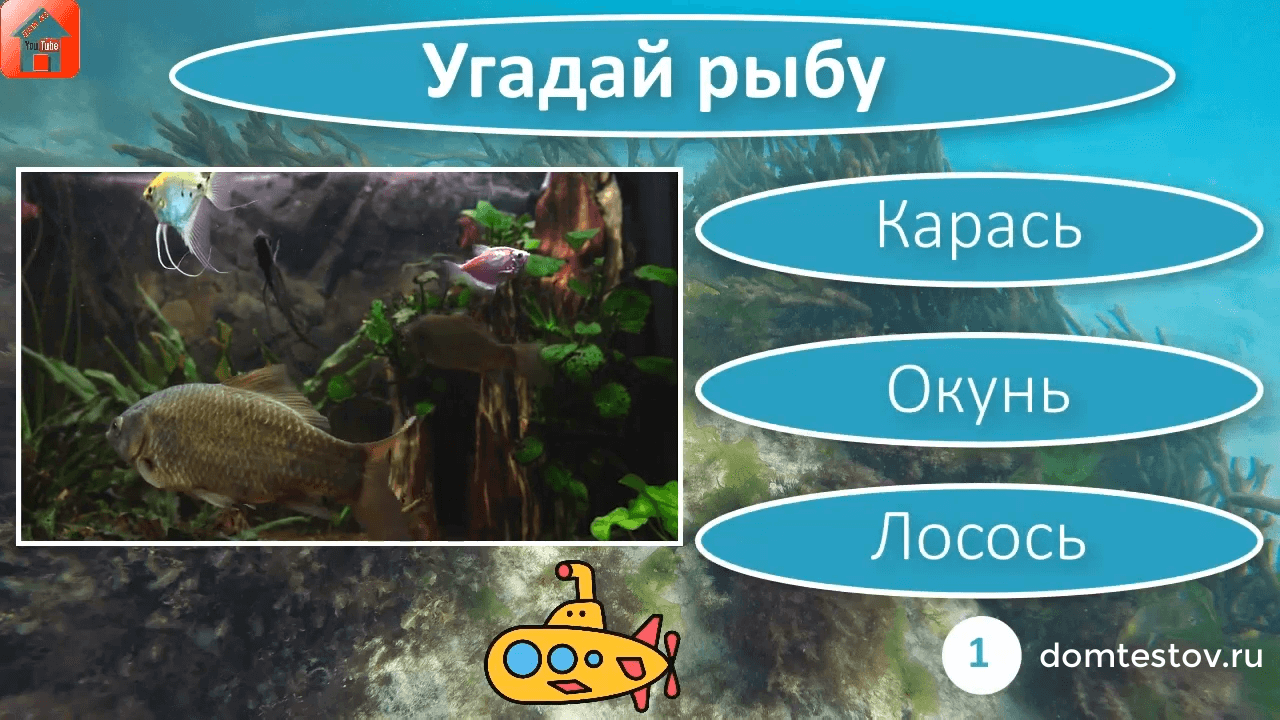 ? Дзен https://zen.yandex.ru/dom49 ? YouTube https://www.youtube.com/channel/UCtqZT3_uLlOr6xMseGsEgiw ? Rutube https://rutube.ru/channel/24243775/ ? Одноклассники https://ok.ru/group/68849937743914 ? ВКонтакте https://vk.com/domtestov ? Mail.ru https://my.mail.ru/community/domtestov/ ? ЖЖ https://zanzebir.livejournal.com/ ? Сайт Дом тестов https://domtestov.ru ? Посмотрите Тест Животные ? https://bit.ly/animals-test ? Тест Птицы ? https://bit.ly/birds-test ? Тест Рыбы ? https://bit.ly/test-fish ? Всем привет! Посмотрите наш "Тест Рыбы. Угадай рыбу. Проверь хорошо ли ты знаешь рыб в игре-викторине. 10 вопросов и ответов. Тест #1 Игра-викторина для детей, школьников и взрослых". ? Посмотрите наши тесты и викторины, расскажите о них друзьям, детям и внукам. Спасибо за просмотр видео. Удачи вам и хорошего дня! ❤ Пожалуйста подпишитесь на наш канал в Дзене и на YT, Rutube, поддержите канал и ролики подпиской, лайками и комментариями, заходите на наш сайт (ссылка в шапке канала), там вы найдете много тестов через функцию поиска. Это поможет нам создавать и выкладывать новые видео.