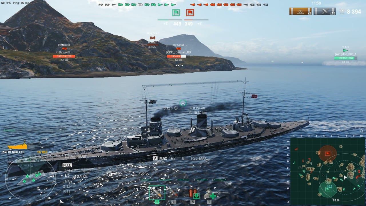 Немецкий линкор Moltke .Морской бой-6.Игра World Of Warships