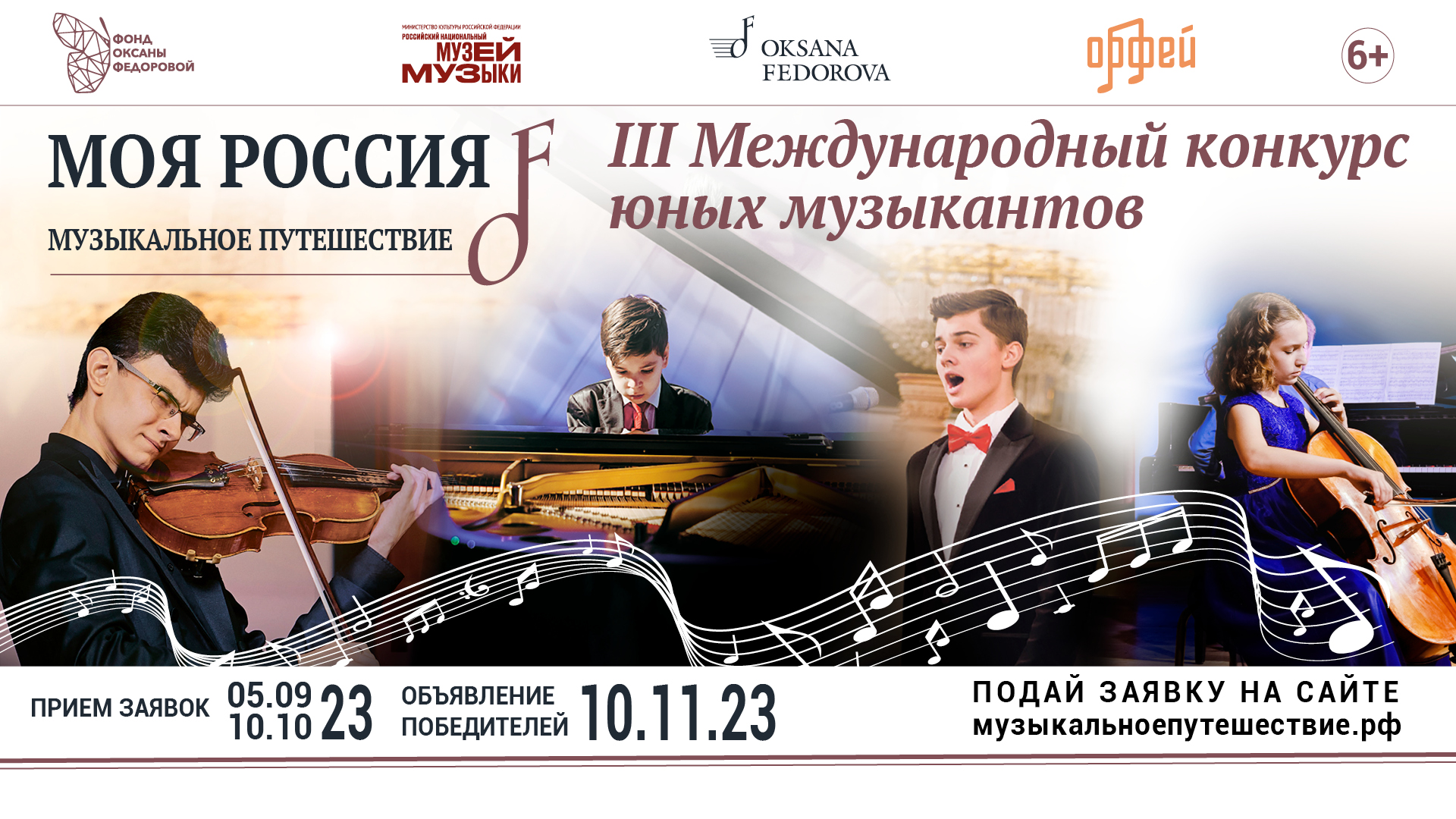 Друзья, фонд Оксаны Федоровой приглашает всех детей, которые занимаются классической музыкой принять участие в III Международном конкурсе юных музыкантов "Моя Россия: музыкальное путешествие"! Участие в конкурсе открыто для детей от 6 до 18 лет по номинациям вокалисты и солисты-инструменталисты. Заявки принимаются на сайте с 5 сентября по 10 октября 2023 года на сайте https://музыкальноепутешествие.рф/konkurs-2023/. Победители будут объявлены 10 ноября! Работы участников будут оценивать Экспертный совет и Жюри конкурса, в которые войдут известные музыканты, деятели культуры и искусства. Победители конкурса выступят на Гала-концерте в Москве, и вместе с памятной статуэткой и Дипломом получат возможность принять участие в концертах проекта "Моя Россия: музыкальное путешествие" в 2024 году. Желаем вам успеха и ярких музыкальных побед! Официальный сайт конкурса https://музыкальноепутешествие.рф/konkurs-2023/ #музыкальноепутешествие #Конкурс