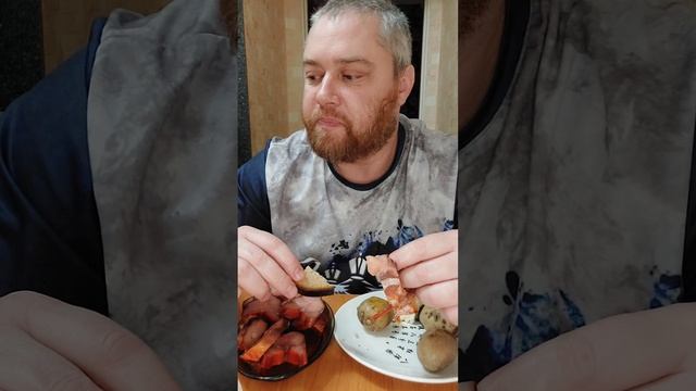 На ужин кета холодного копчения, картошка и болгарский перец. Мукбанг. #мукбанг #кета #кетахолодного