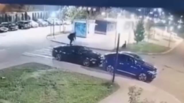 Лабуб забрался на машину и решил попрыгать на капоте и на крыше
