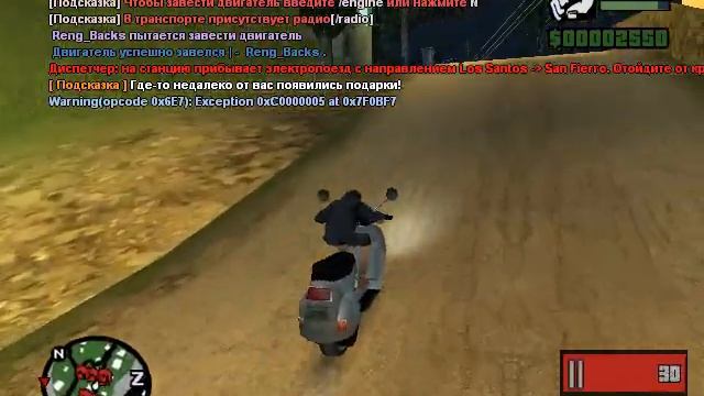 SAMP Пытаю на скутере заехать в горку :D