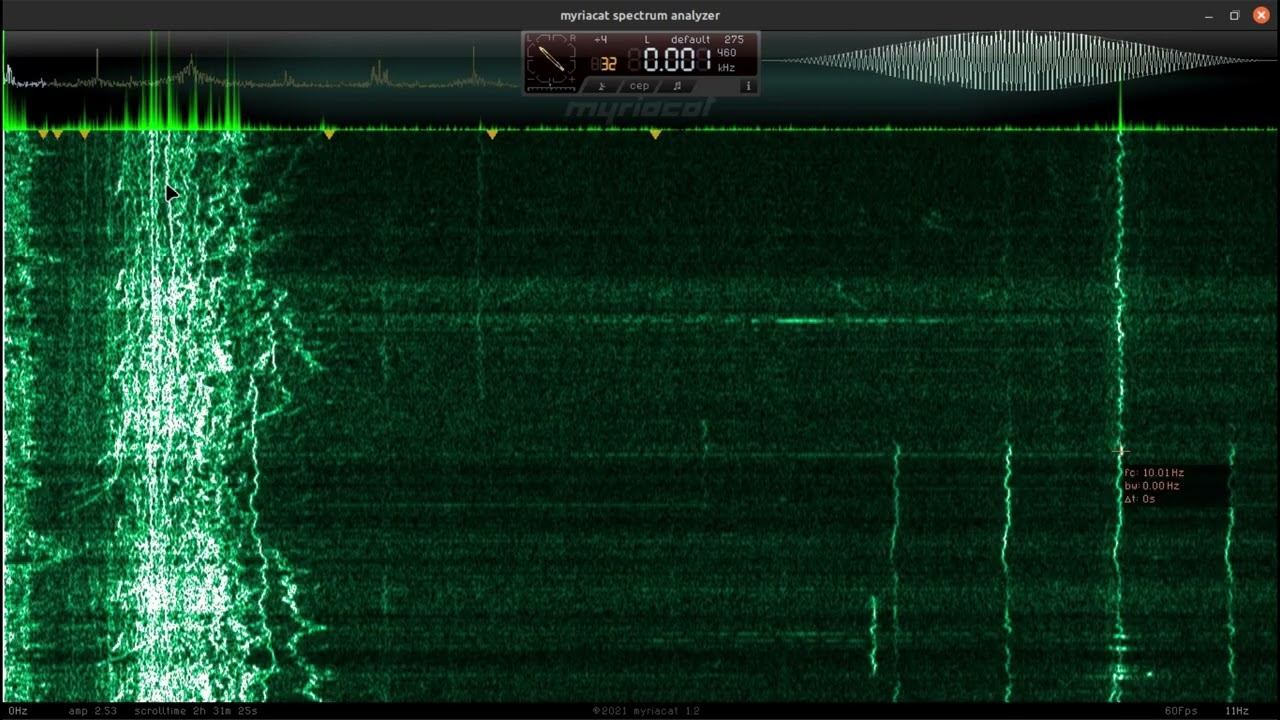 The signal is removed from grounding on 2 stainless steel pins 1 m deep. The frequency range up to 10 Hz refers to the geomagnetic background, but artificial signals are also visible here. The sound in the video is accelerated and processed so that the frequencies on this spectrum are in the audible range, approximately 1 Hz corresponds to 1000 Hz, etc. - About natural signals: О ПРОИСХОЖДЕНИИ ЧАСТОТНОЙ МОДУЛЯЦИИ СЕРПЕНТИННОЙ ЭМИССИИ https://youtu.be/bwWHggY1IVU?si=xAX1diRKI9MxQJ88&t=1740 - Previous monitoring: EMF monitor https://youtube.com/playlist?list=PLiRg2YCbXcwn41BHqADKVBep_TgVq6XUN Очень Низкая Частота ~ Very Low Frequency https://youtube.com/playlist?list=PLiRg2YCbXcwnp5DxM4PnSs7k_Rnypaqek SIGNALS IN THE GROUND https://youtube.com/playlist?list=PLiRg2YCbXcwl6f3Bf5arHbGSOCNE5U71O - поддержать канал: 8-999-654-93-44