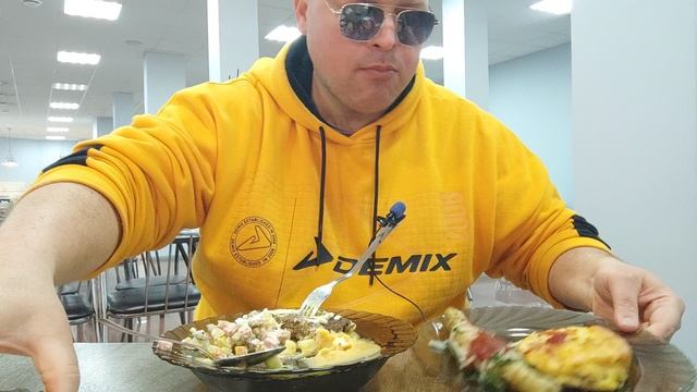 МУКБАНГ в столовой/ОБЖОР суп харчо и салат Оливье,гороховое пюре и печёночная котлета,люля кебаб