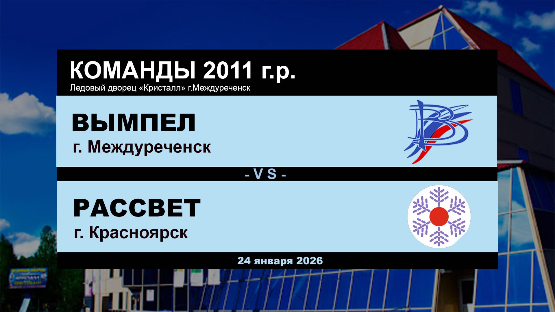 Хоккейная игра 24.01.2026 г. Команды 2011 г.р. Междуреченск - Красноярск Ледовый дворец "Кристалл" #Междуреченск #Вымпел #Рассвет