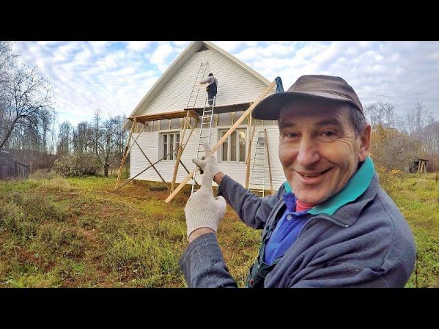 Облицовка старого деревенского дома сайдингом.
