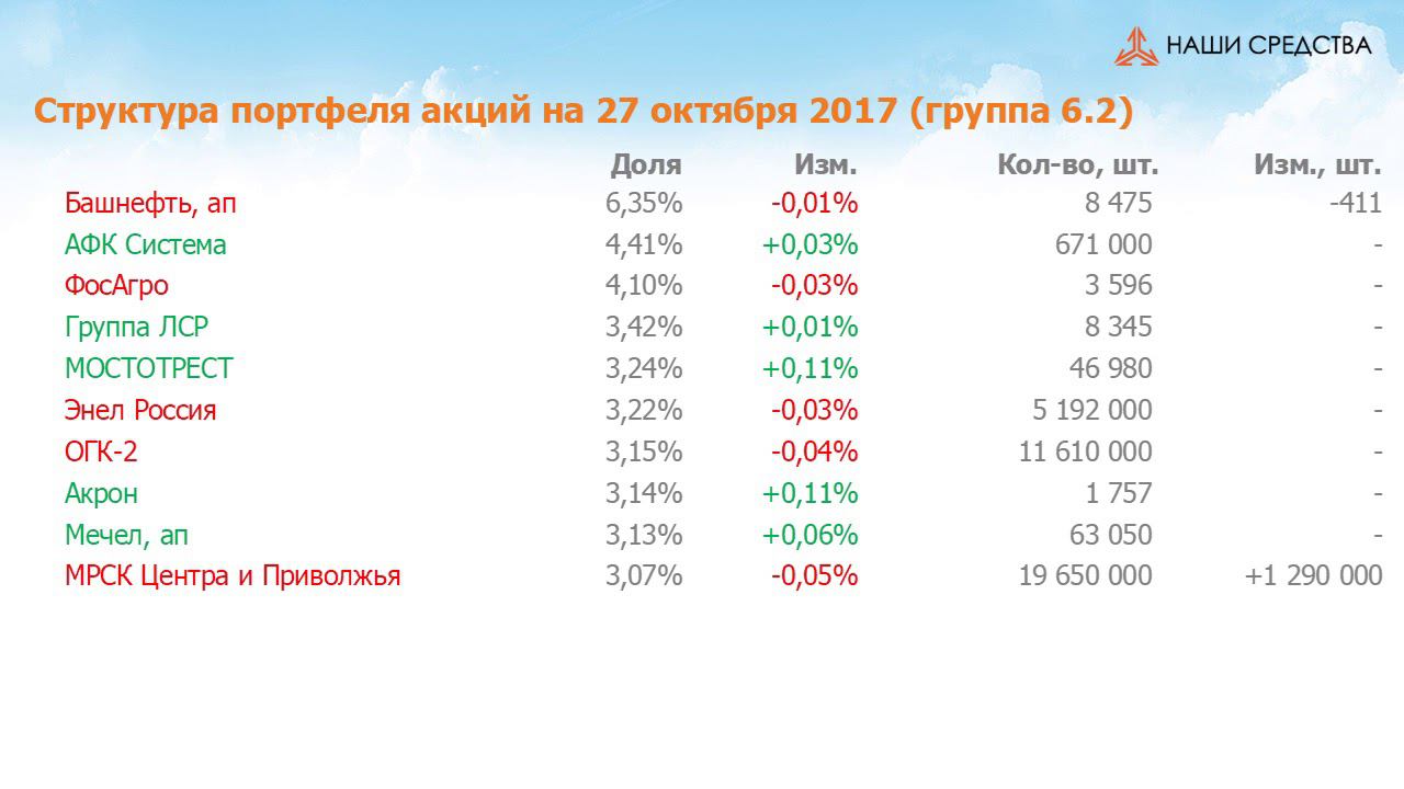 Собственные средства компании #138. Обзор с 13.10.2017 по 27.10.2017