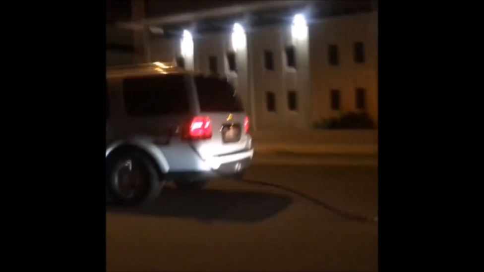 Водитель видимо так спешил(-а), что просто не было времени на заправке вытаскивать бензопистолет из бака )