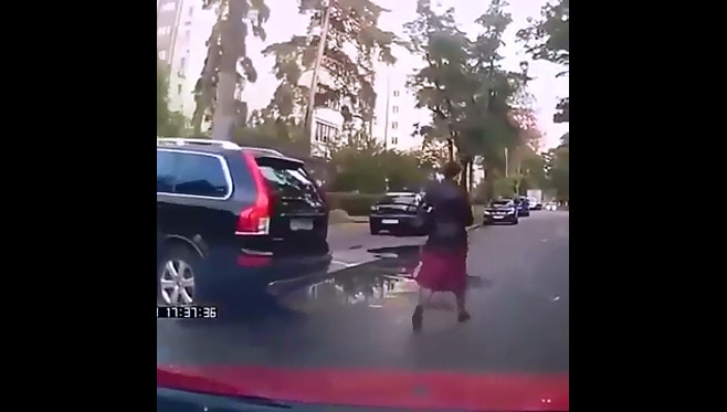 Водитель автомобиля посигналил женщине , которая от испуга упала в болото.
