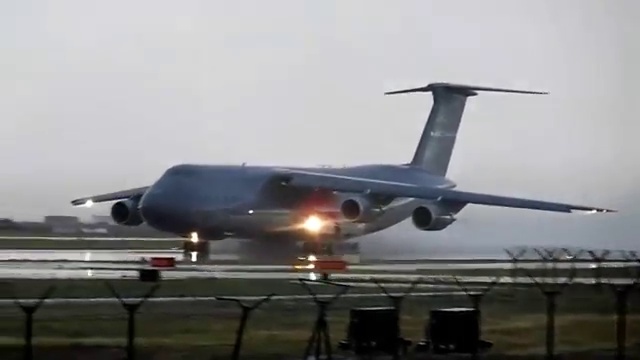 Огромный стратегический военно-транспортный самолет C5 Galaxy взлетает с затопленной полосы. Скучно? Загляни на наш сайт: http://flagvruki.com/