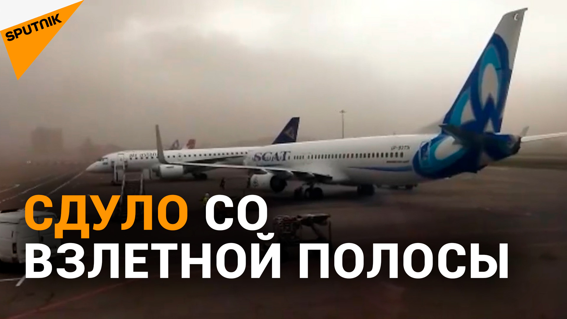 В аэропорту Алматы сильный ветер развернул Боинг на взлетном поле