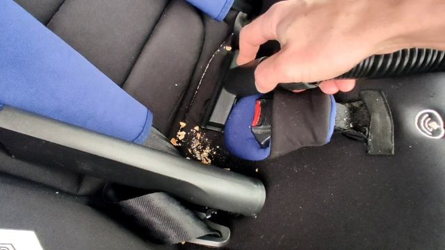 Уборка крошек с детского кресла строительным аккумуляторным пылесосом FOXWELD VCB 15/20V-X EVO