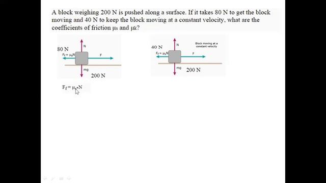 COEFFICIENTS OF STATIC AND KINETIC FRICTION SAMPLE PROBLEM