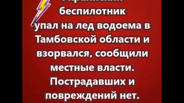 Украинский беспилотник упал на лед водоема в Тамбовской области