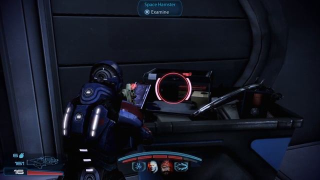 Shepard’s dialogue in this scene is magnificent. She loves her pets! Shame on the evil Shepard clone for tossing out space hamster!