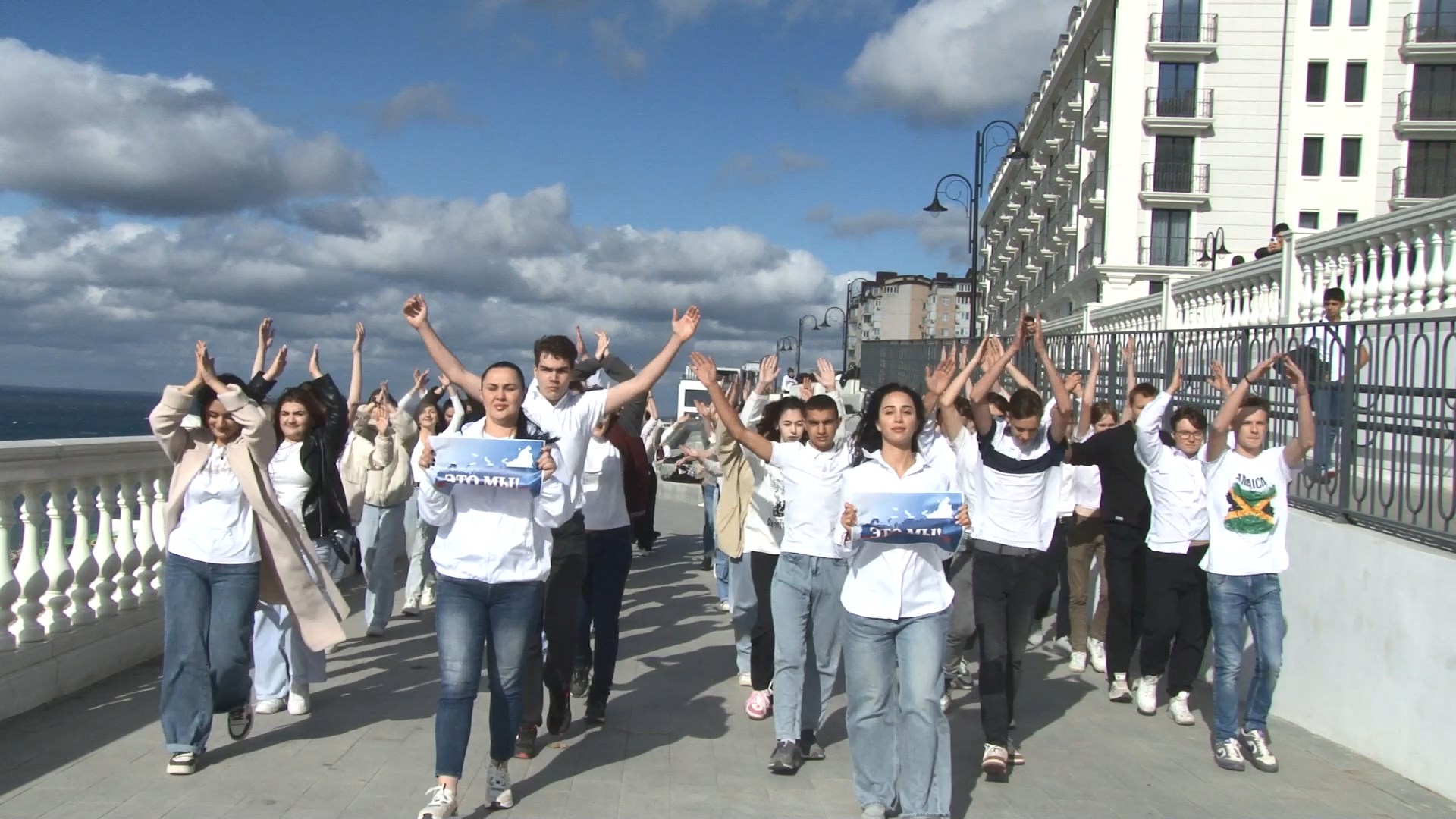 В Анапе продолжается съемка видеоролика, который станет подарком для жителей и гостей курорта в День Народного единства. Сегодня творческая группа переместилась в центр города. Напомним, увидеть результат работы активистов можно будет 4 ноября.