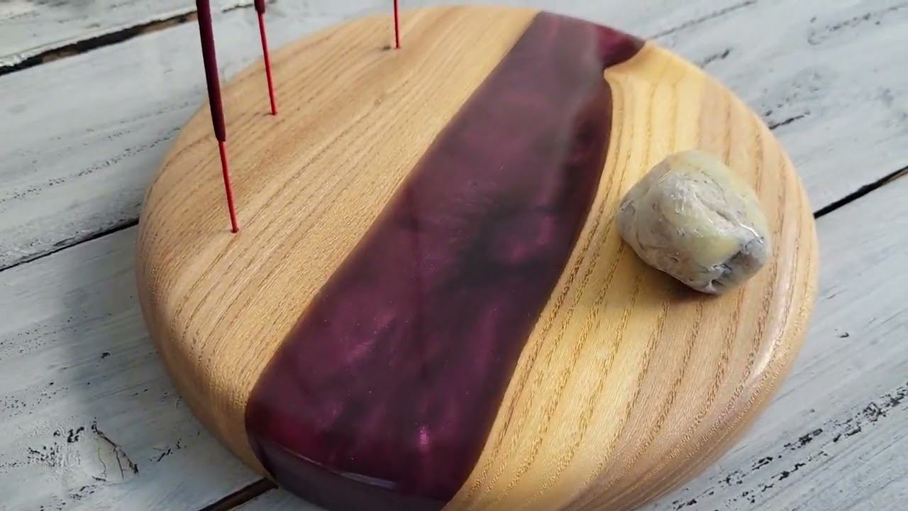 Подставка под аромапалочки из дерева и полимерной смолы под три ароматические палочки, галтовка натурального камня опал: подставка диаметр 18,5 см., высота 2,5 см., вес 480 гр.; галтовка опала 3х4 см. (указаны примерные размеры) купить можно в нашем магазине https://www.livemaster.ru/tvorcheskay-masterskaya-granat-mk?view=profile
