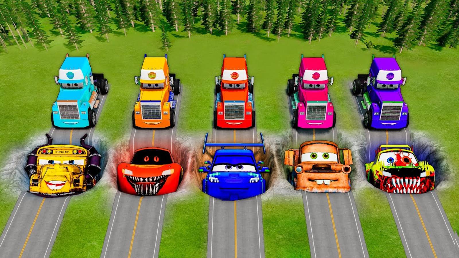 ВСЕ ЦВЕТА ГРУЗОВИКА МАКА ГОНКА НА ПРОЧНОСТЬ ТАЧКИ МОЛНИЯ МАККУИН