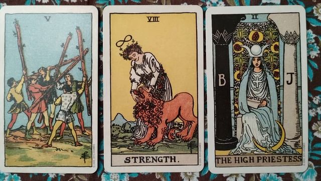 Карты Таро Уэйта. Пример из практики. Сочетание карт 5ж+сила+жрица.