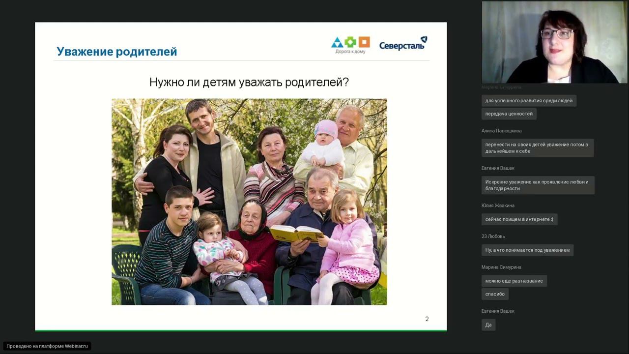 Вы ждете уважения от своего ребенка Для чего детям уважать своих родителей. Почему нас задевает, если мы не чувствуем уважения со стороны собственных детей. Как проявляется уважение. В этой ситуации вам в помощь вебинар «Он меня ни в грош не ставит!» Екатерины Кряжевой, психолога БФ "Дорога к дому" Мероприятие соcтоится в рамках проекта «Родительское просвещение» БФ «Дорога к дому» компании «Северсталь». 05:50 уважение родителей 13:08 понятие "уважение" 14:30 определение "уважение" 17:51 семейная иерархия 23:48 практическое применение 25:45 виды границ 48:56 составляющие психологических границ 54:42 как обращаться с границами 1:06:00 наши контакты 1:10:00 ответы на вопросы