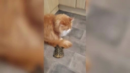 Черепаха терроризирует кота