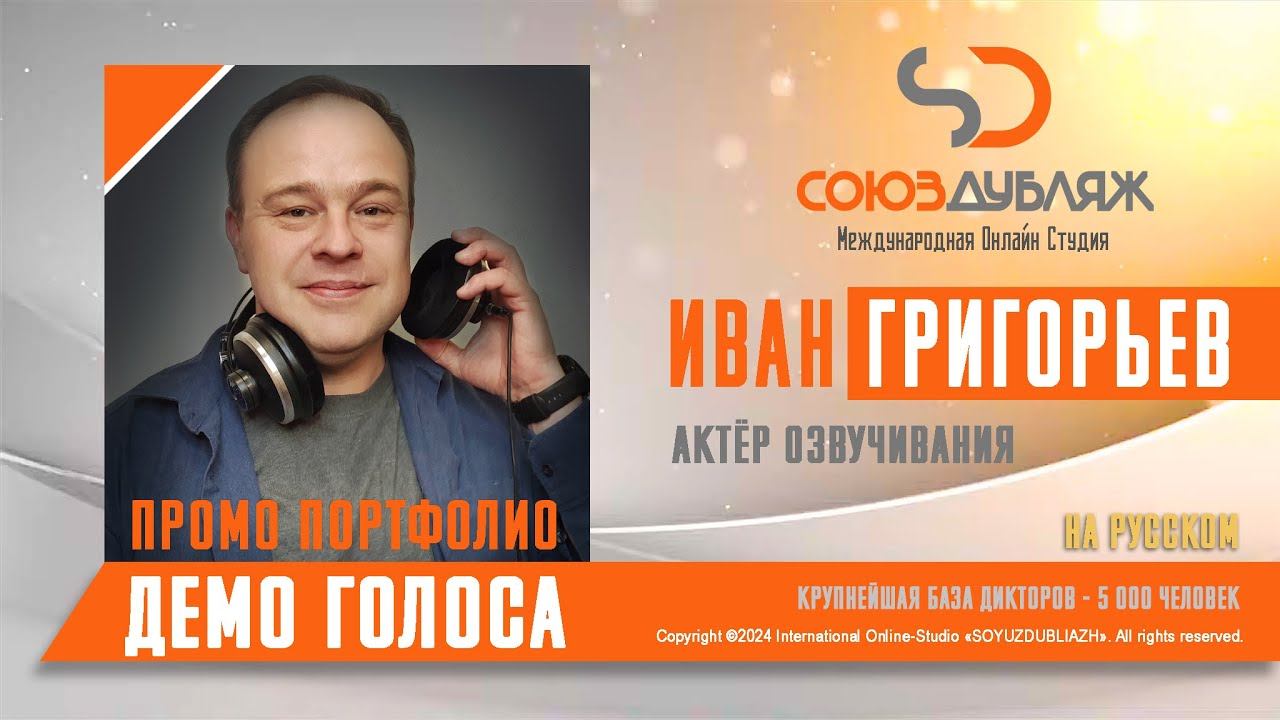 #СоюзДубляж #БазаДикторов #Озвучка ✔️Иван Григорьев, актёр озвучивания. Международная Онлайн-Студия "СОЮЗДУБЛЯЖ" - профессиональная озвучка и дубляж. ▪️Рабочая группа в Телеграм: https://t.me/soyuzdubliazh ▪️Контакт для связи: https://t.me/SoyuzAdmin ▪️Подпишись:https://www.youtube.com/c/SOYUZDUBLIAZH ▪️Сайт: https://www.soyuzdubliazh.com/ Лучшие голоса для вашей аудиорекламы и видеороликов. База дикторов - 5 000 человек, профессионального уровня на ENG| FR| TR| RU| ISR| AZ| UA| KZ| UZ| языках. Мужские и Женские топовые голоса для озвучки любых проектов, таких как: Рекламы, Презентации, Фильмы, Сериалы, Игры, Мультфильмы, ТВ Шоу, Аудио-видео визитки. ✔️Сотрудничая с нами вы получаете свой проект под ключ, не выходя из дома или офиса. Наша слаженная команда из лучших дикторов, актёров озвучивания, режиссёров и звукорежиссёров в кратчайшие сроки озвучат или отдублируют ваш заказ на профессиональном уровне. Образцы работ нашего портфолио вы сможете посмотреть на канале СОЮЗДУБЛЯЖ. ВНИМАНИЕ: ✔️Мы приглашаем специалистов озвучки к сотрудничеству в нашей команде. Вы можете пройти по ссылке в наш телеграм канал и связаться с Админом для обсуждения. ✔️Всем заказчикам подобных медиа проектов по озвучки и дубляжу фильмов, сериалов, документалок обращаться непосредственно к Админу Телеграм группы СОЮЗДУБЛЯЖ, пройдя по ссылке: Проходи по ссылке: https://t.me/soyuzdubliazh International Online-Studio SOYUZDUDLIAZH presents a highly professional approach in voice-over and dubbing. ▪️Our working group https://t.me/soyuzdubliazh ▪️Chief manager https://t.me/SoyuzAdmin ▪️Follow https://www.youtube.com/c/SOYUZDUDLIAZH ▪️Web: https://www.soyuzdubliazh.com/ We offer You the best Voices for your Audio commercials and Video`s. Our Database contains over 5 000 voices of native speakers and high-class foreign language specialists in ENG| FR| TR| RU| ISR| AZ| UA| KZ| UZ|. Male & Female top level voices for all the variety of dubbing projects such as commercials, presentations, movies, TV-series, video and computer games, cartoons, TV-shows, audio & video portfolio’s – all in one place. As your business partner we guarantee a turn-key project without you leaving your house or office. Our target is to make sure that the dubbing of your project is made as quick as possible by a well-coordinated and professional team of the best speakers, film and sound directors. To whom it may concern! We invite dubbing specialists to join our team. Please contact our manager on Telegram https://t.me/soyuzdubliazh